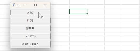これを実行すると、最初に作ったテキストファイルを読み込み、ボタンを実装したフォームが立ち上がる。