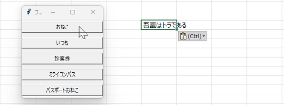 ここでは ”おねこ” のボタンに ”吾輩はトラである” を紐づけている。